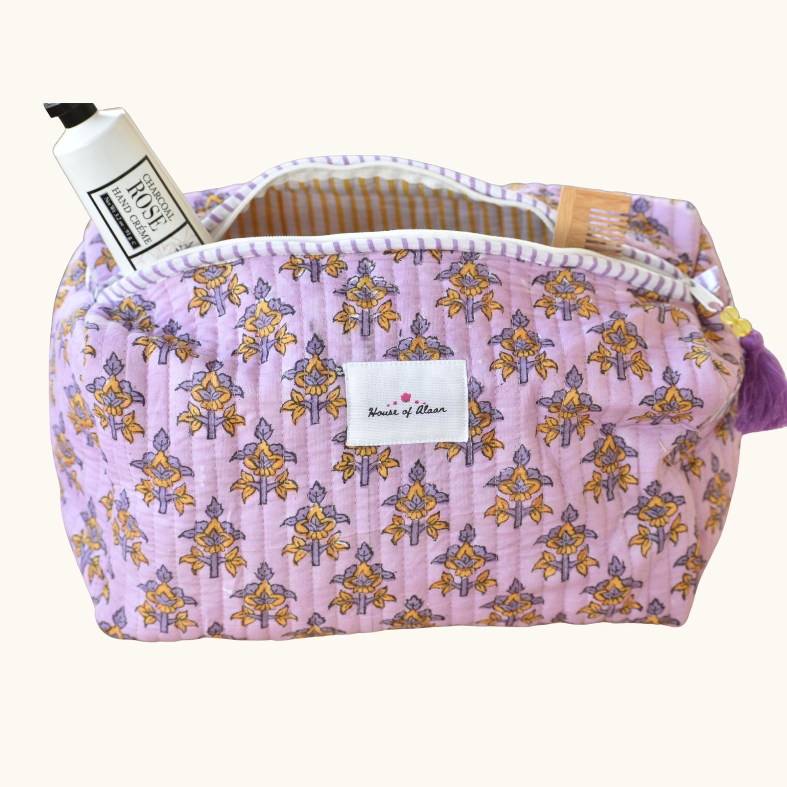Stay effortlessly organized with lightweight, hand block printed travel pouch. Perfect for toiletries, cosmetics, or tech accessories, this ethically crafted pouch combines practicality with artisanal charm.