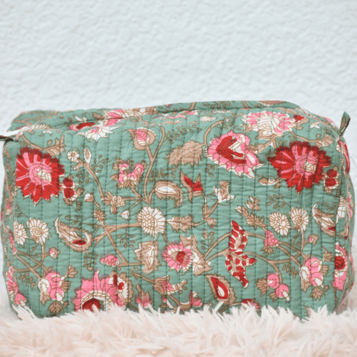 Quilted Cotton Vanity / Travel Pouch - Olive Grove